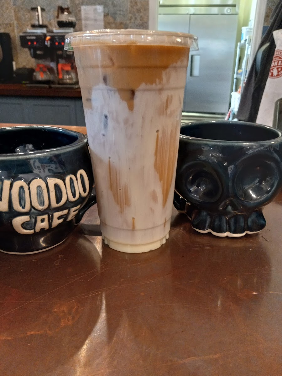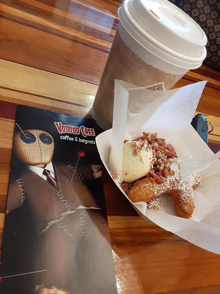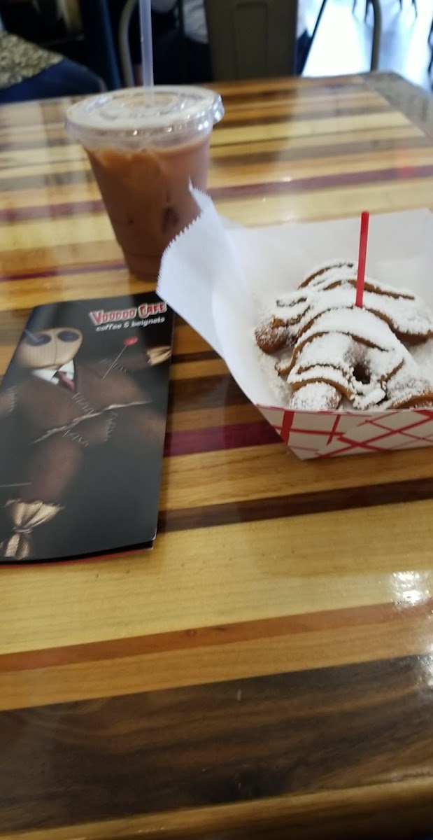 We found this unique café by chance! There was a billboard that advertised VooDoo Café with pictures of their famous voodoo doll shaped beignets with a red spear in the doll. I loved their advertisement and decided to go check it out myself. It's located off a rather busy roadway with plenty of parking! When you walk in, the walls are covered in art from located artist, family board games to play while you eat, handmade crafts, and voodoo crocheted dolls. Their menu has just about anything to please anyone! Hot coffee, cold coffee, and even uncommon drinks. Their selection of voodoo beignets is so large that you can get more than one to share! They have traditional Nutella, cinnamon, and peanut butter along with other flavors. The customer service was great!! The employee who took our order gave us their recommendations and what pairs best. If you like the VooDoo atmosphere and flavorful drinks and food, definitely make a pit stop to VooDoo Café!